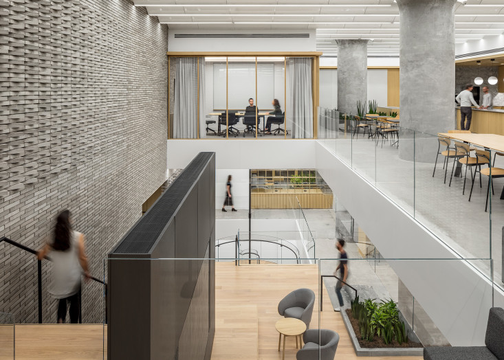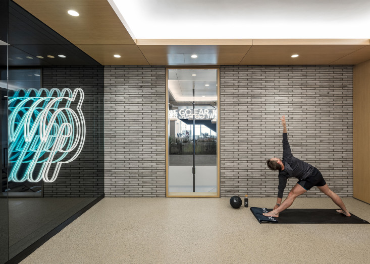 The building features a prominent open stair that connects all floors and departments, including engineering, apparel, and product teams, to encourage collaboration and connection. Key areas such as software labs, user testing spaces, music lounges, and editing rooms were thoughtfully designed to enable continuous innovation and support Peloton’s operational needs.