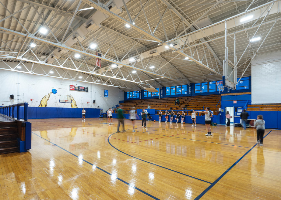 Special attention was given to preserving the school’s historic facade. As a result, DOAS units were strategically positioned to remain hidden—one behind the main building on the gym’s 80-year-old timber frame barrel roof and another on the classroom wing roof, both concealed without unsightly screens. New chases were carefully designed to route ductwork without disrupting the building’s decorative murals. These thoughtful innovations honored the school’s architectural heritage while significantly improving its energy performance and indoor environment.
